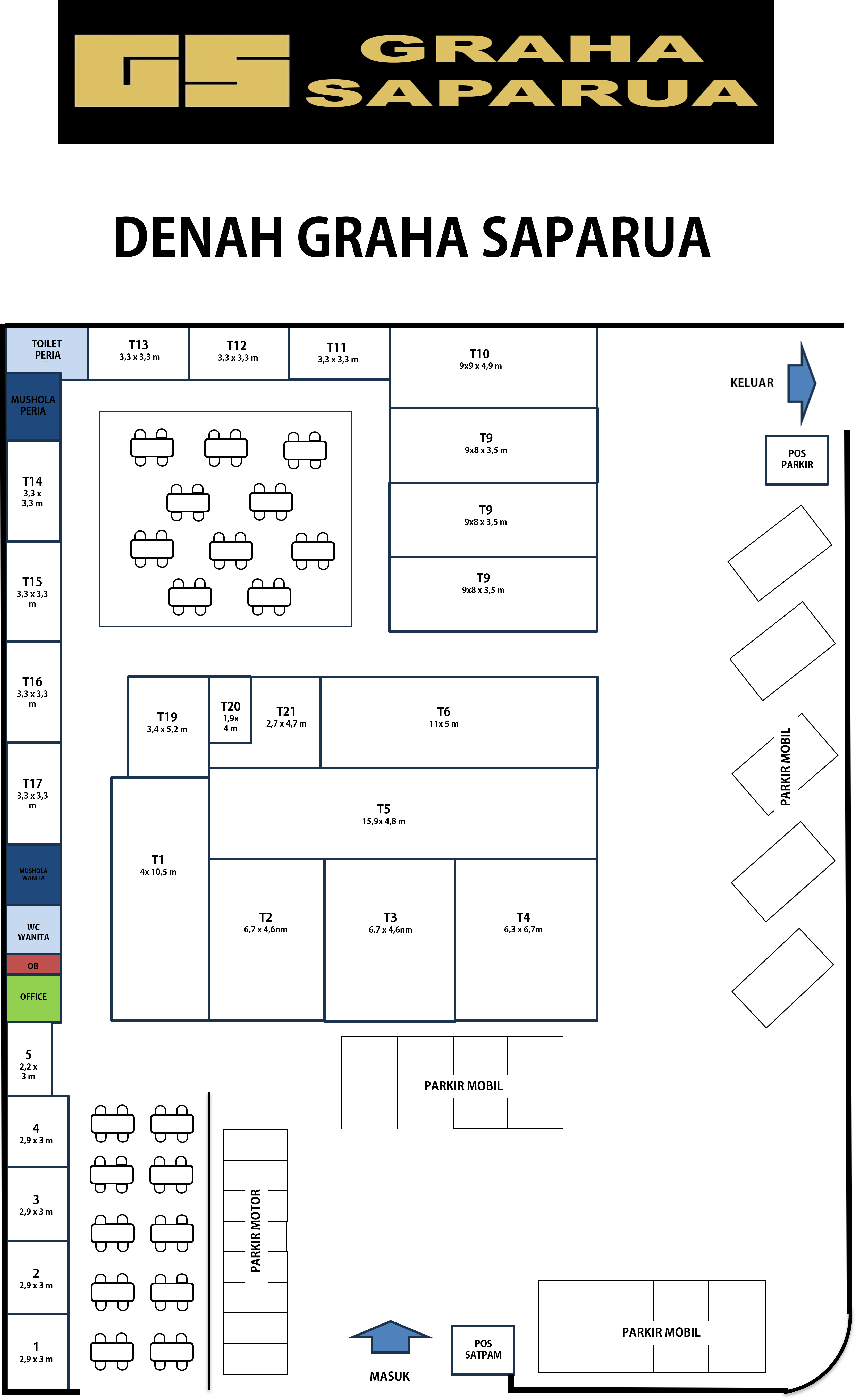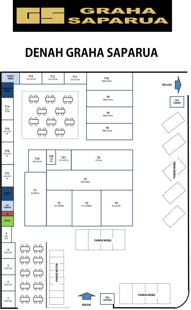 Graha Saparua mempunyai parkiran yang luas, free wifi, 2 toilet pria dan wanita, 2 Mushola pria dan wanita, serta air bersih. Layanan kebersihan dan keamanan kami selalu menjalankan tugasnya untuk menjaga kenyamanan pengunjung.
